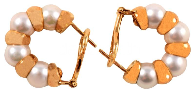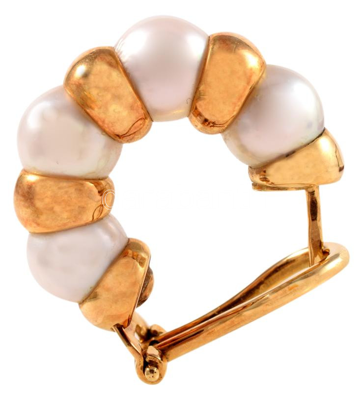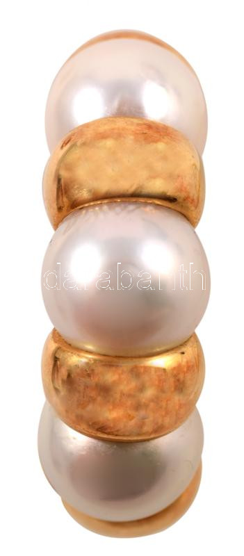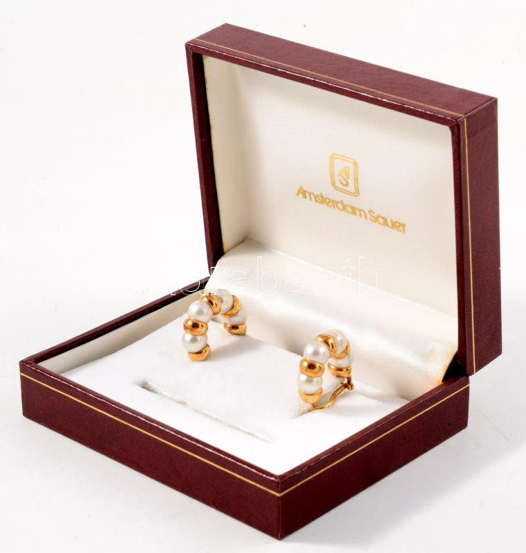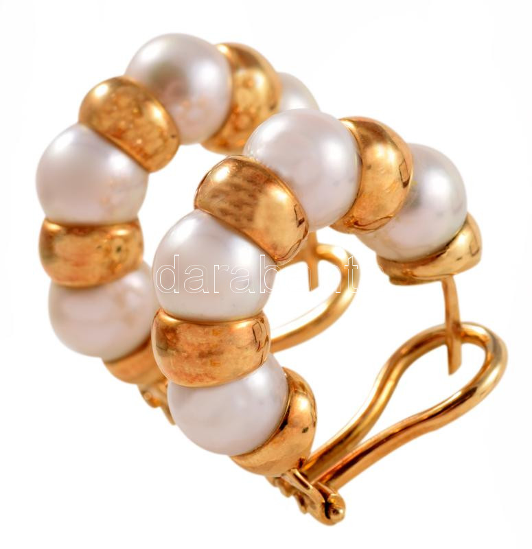 Fülbevaló pár, 18k arany (Au) , gyöngyökkel ékítve, Jelzett, magyar fémjellel. 11,66 g d: 24 mm