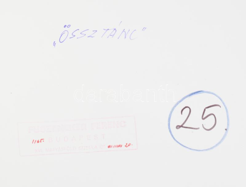 1977 Fuszeneker Ferenc budapesti fotóművész felvétele (Össztánc), 1 db nagyméretű, feliratozott és pecséttel jelzett, vintage alkotás, ezüst zselatinos fotópapíron, a használatból eredő kisebb hibákkal; a fotó része volt a néhai Népművelési Intézet által összeállított, FOTÓMAPPA 1977 című vándor-fotókiállításnak, 24x60 cm