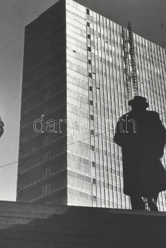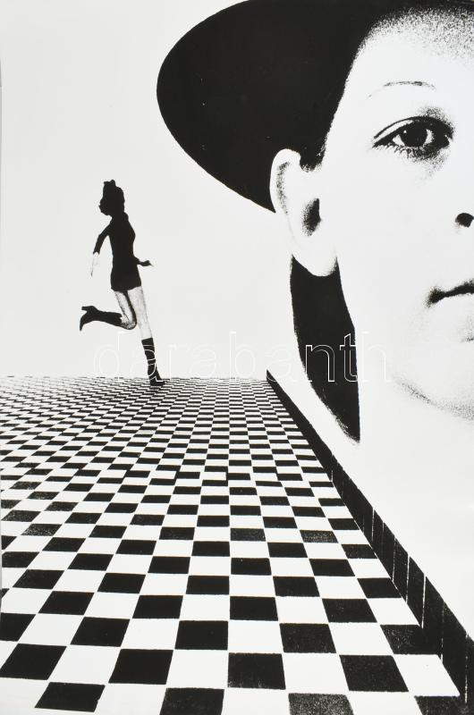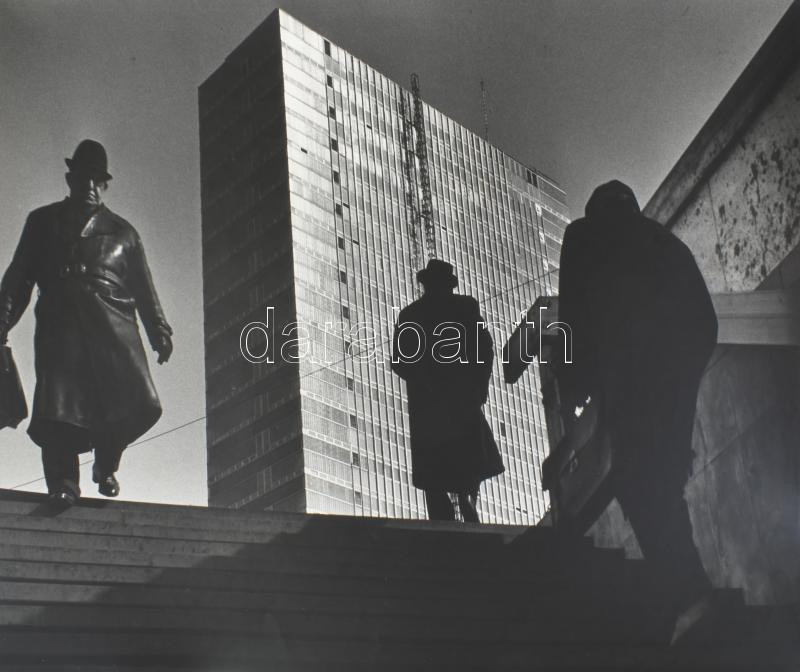 cca 1977 Vécsy Attila budapesti fotóművész feliratozott alkotása (Térben), 1 db nagyméretű, vintage fotó, ezüst zselatinos fotópapíron, a használatból eredő kisebb hibákkal; a fotó része volt a néhai Népművelési Intézet által összeállított, FOTÓMAPPA 1977 című vándor-fotókiállításnak, 59,5x44 cm
