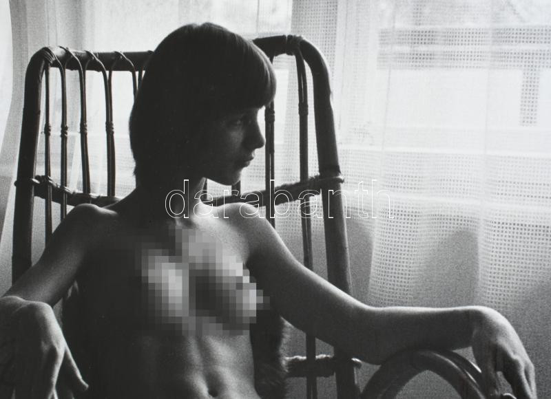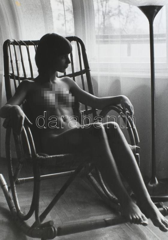 1977 Somogyi Ferenc fotóművész felvétele (Hintaszékben), 1 db nagyméretű, feliratozott, vintage alkotás, ezüst zselatinos fotópapíron, a használatból eredő kisebb hibákkal; a fotó része volt a néhai Népművelési Intézet által összeállított, FOTÓMAPPA 1977 című vándor-fotókiállításnak, 60x44 cm