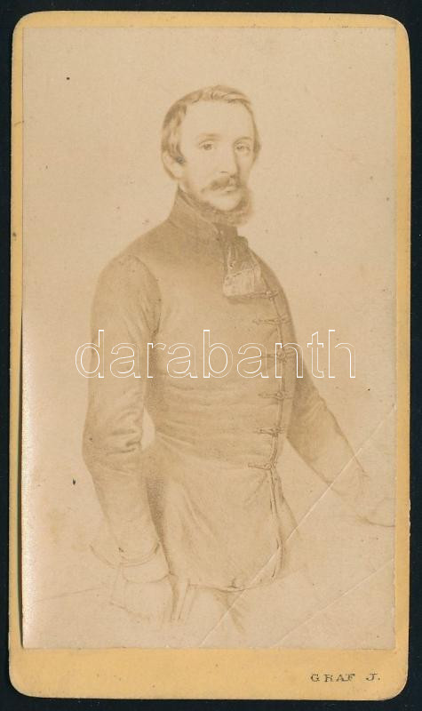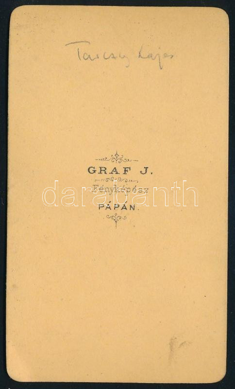 cca 1870 Tarczy Lajos (1807-1881) tanár, akadémikus, grafika nyomán készült keményhátú fotó Graf pápai műterméből, felületén törésnyomok, 10,5×6,5 cm