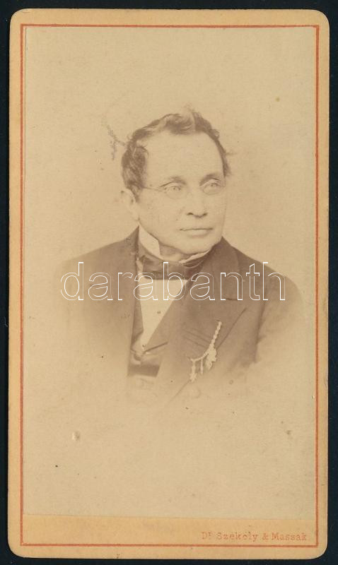 cca 1870 Andreas Zelinka (1802-1878) Bécs polgármestere, keményhátú fotó Dr. Székely & Massak bécsi műterméből, 10,5×6,5 cm