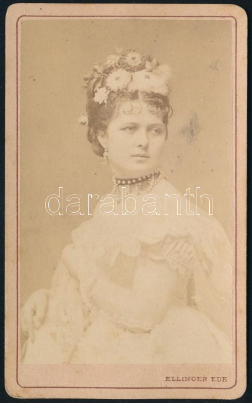 cca 1875 Blaha Lujza (1850-1926) színésznő portréja, keményhátú fotó Ellinger Ede budapesti műterméből, 10,5×6,5 cm