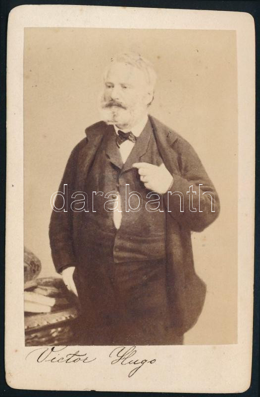 cca 1860 Victor Hugo (1802-1885) francia író portréja, keményhátú fotó, 10,5×6,5 cm