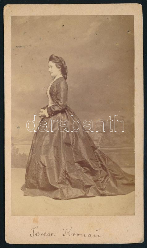cca 1860 Frederika Kronau (1841-1918) osztrák opera-énekesnő, keményhátú fotó Strelisky pesti műterméből, 10,5×6,5 cm