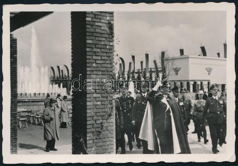 cca 1935-1940 Hermann Göring (1893-1946) német politikus, katonai vezető, a Nemzetiszocialista Német Munkáspárt vezető tagja, a légierő (Luftwaffe) parancsnoka, Adolf Hitler után a Harmadik Birodalom második embere díszkíséret társaságában, fotó, jelzés nélkül, 6x9 cm // cca 1935-1940 Hermann Göring (1893-1946) German politician, military leader, prominent figure of the Nazi Party (NSDAP), commander of the air force (Luftwaffe) with an entourage, photo, unmarked, 6x9 cm