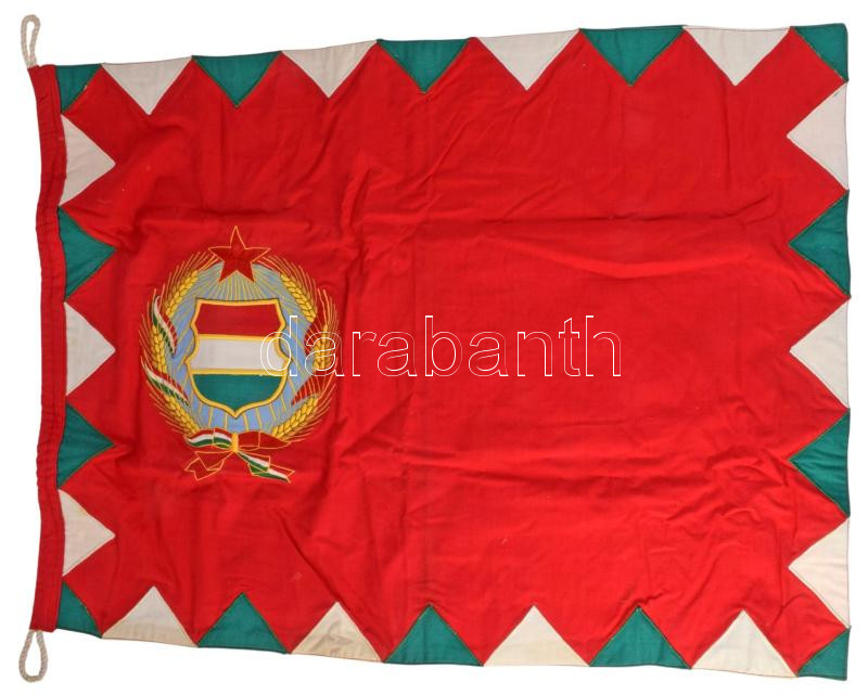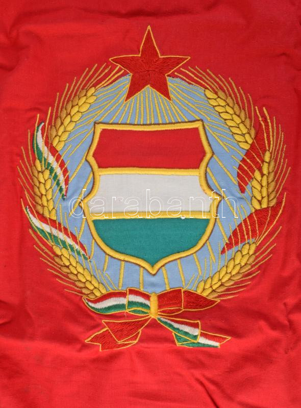 cca 1957-1989 Honvéd Folyami Flottilla díszlobogó, hímzett Kádár-címerrel, 58x77 cm