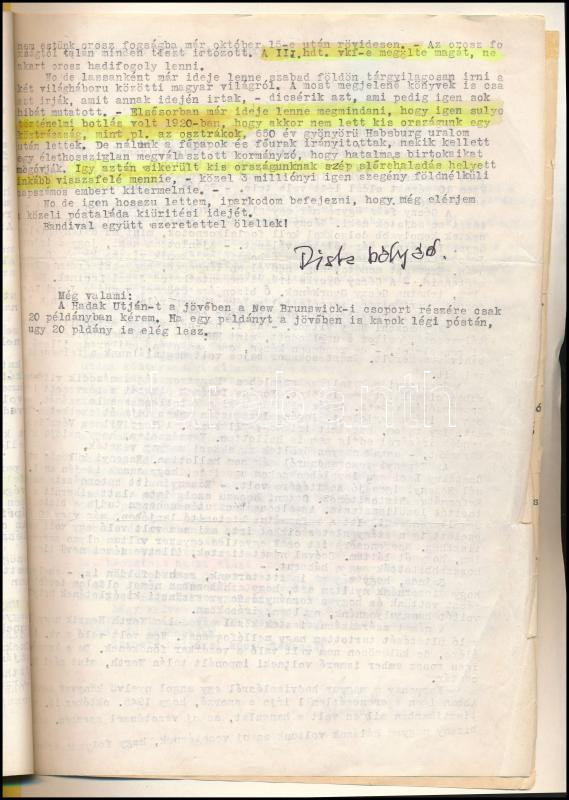 "Papír tengeremben kutatva valami után, a kezembe került a volt vezérkarunk életére vonatkozó írásom, amit 1983-ban kivánságodra állítottam össze és küldtem el a címedre. Abban valami lényegeset kihagytam akkor, - azt kívánom most pótolni."