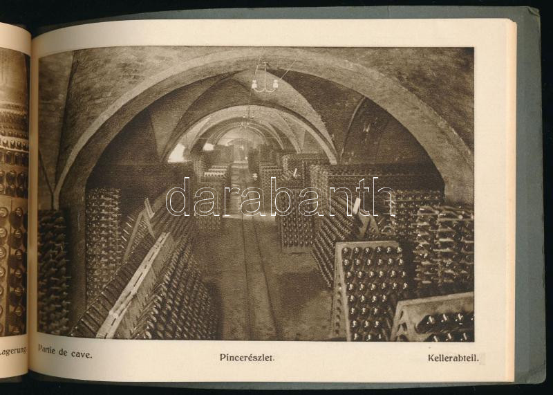 Törley Pezsgőgyár, Budafok 1880-1930. [Képes reklámkiadvány.] Bp., 1930., Monostory György-ny., [12] + 26 (fekete-fehér képtáblák) t. Magyar, német és francia nyelvű bevezetéssel s képfeliratozással. Rendkívül gazdag fekete-fehér képanyaggal illusztrált. Kiadói, zsinórfűzött papírkötésben, az elülső borítón aranyozott, dombornyomású címfelirattal, és a Törley-család aranyozott címerével, a hátsó borítón folttal, de ezt leszámítva jó állapotban, 12x17 cm.