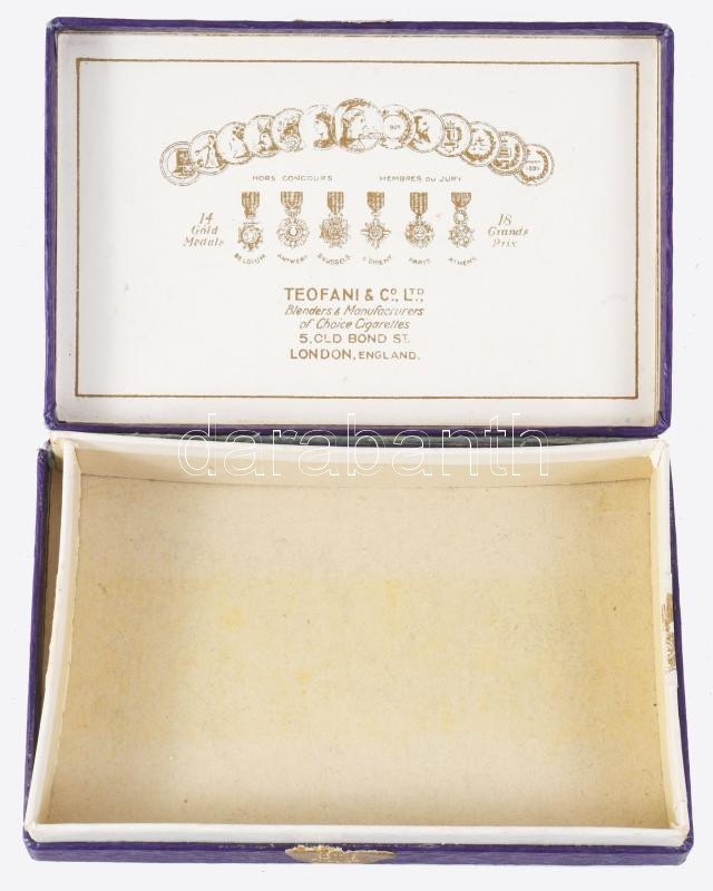 Teofani and Co. London cigarettás doboz. ca 1900. Aranyozott kartonált papírdoboz 11x7 cm