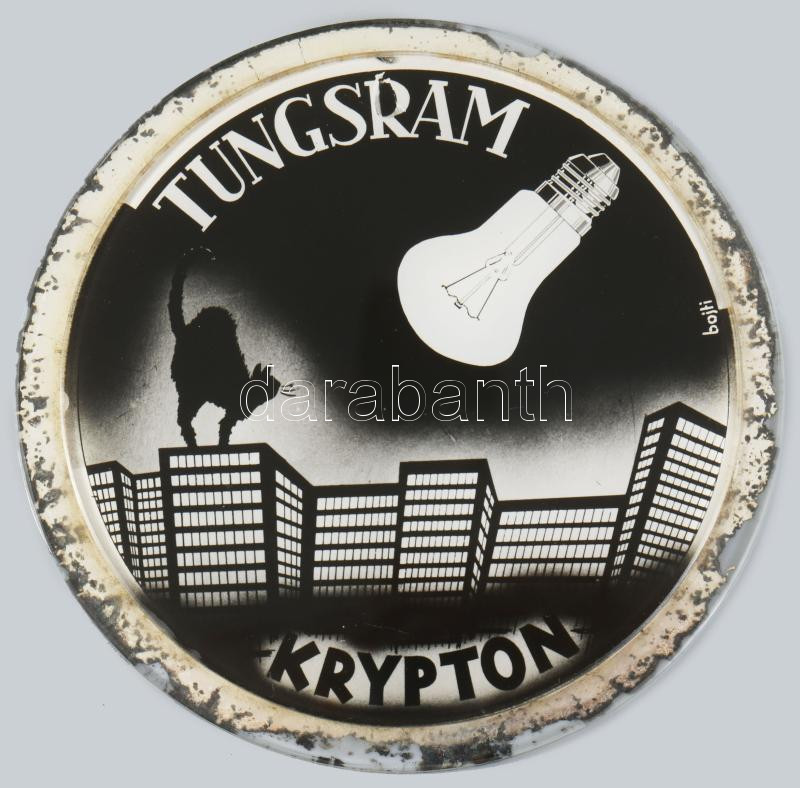 cca 1930-1940 "Tungsram Krypton" reklám korong, jelzett a nyomaton (Bojti), papír (nyomat), üveg korongok, nagyobb korong: d: 9 cm