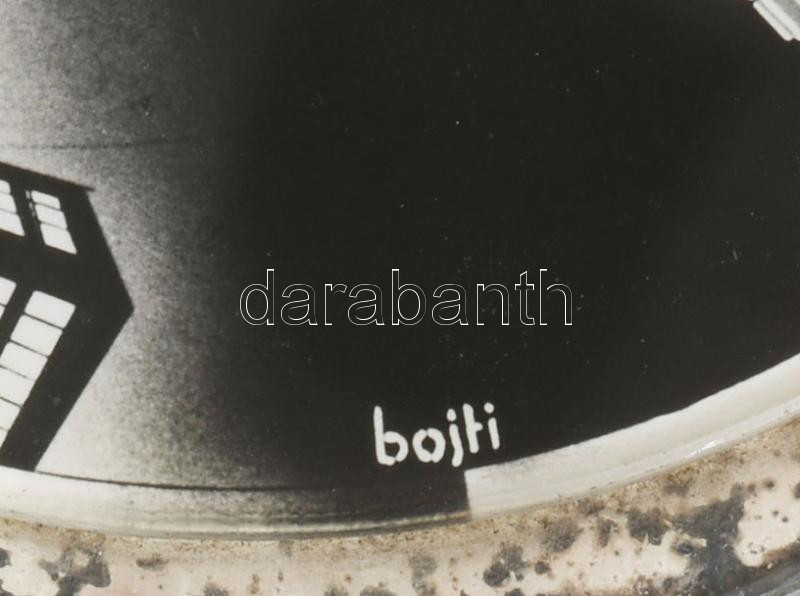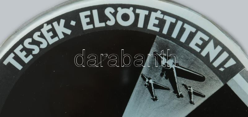 cca 1930-1940 "Tessék Elsötétíteni! Schmoll" reklám korong, jelzett a nyomaton (Bojti), papír (nyomat), üveg korong, üveg korong: d: 8 cm