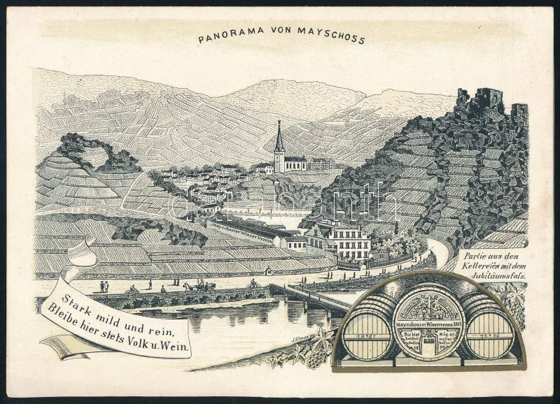 1900 Mayschoss a. d. Ahr borospince dekoratív litho reklám nyomtatvány és árjegyzéke 4 p.