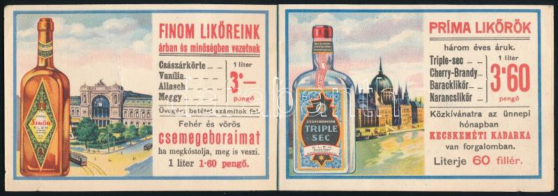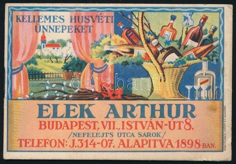 cca 1927-1930 Elek Arthur húsvéti bor és ital árjegyzéke. Bp.,én.,Magyar Földrajzi Intézet Rt., színes litografált borítóval és illusztrációkkal, az képeken budapesti látképekkel, 4 sztl. lev., 8x11 cm