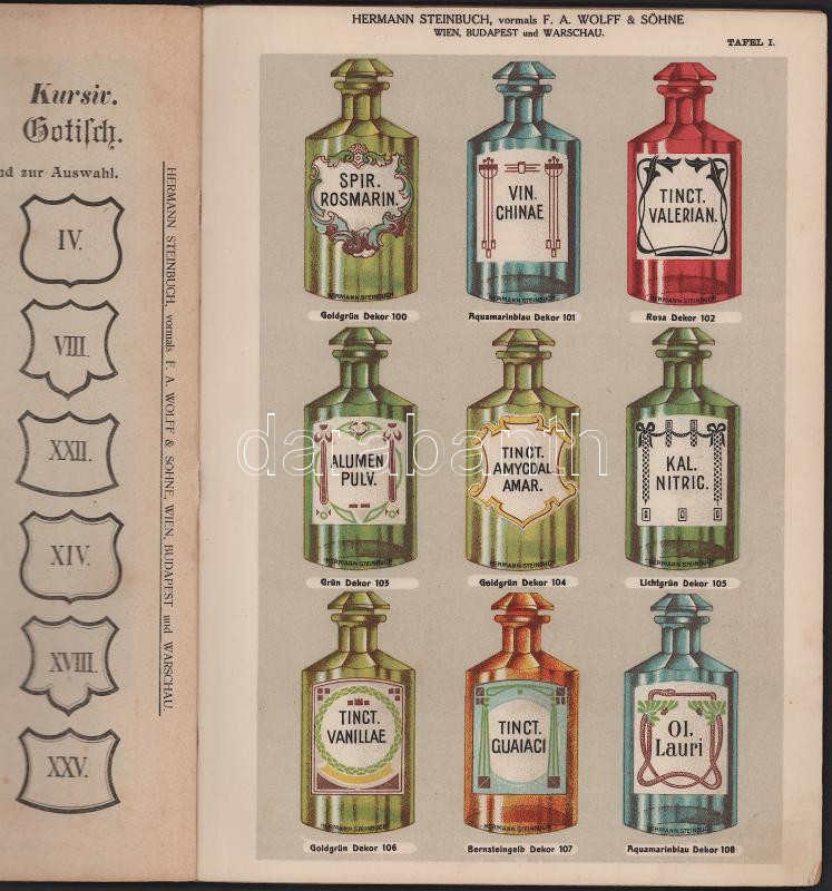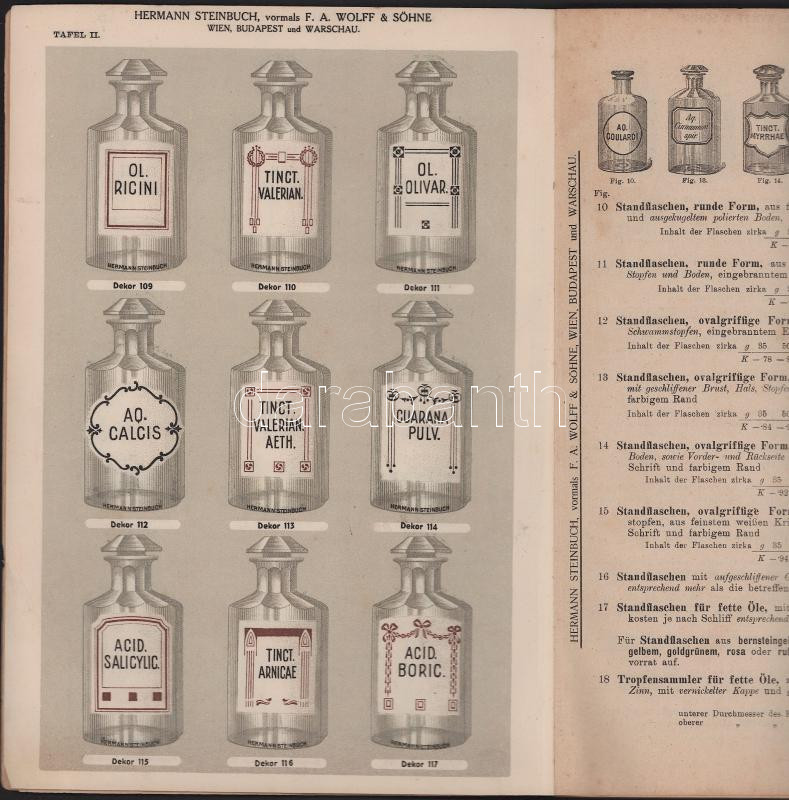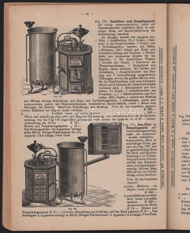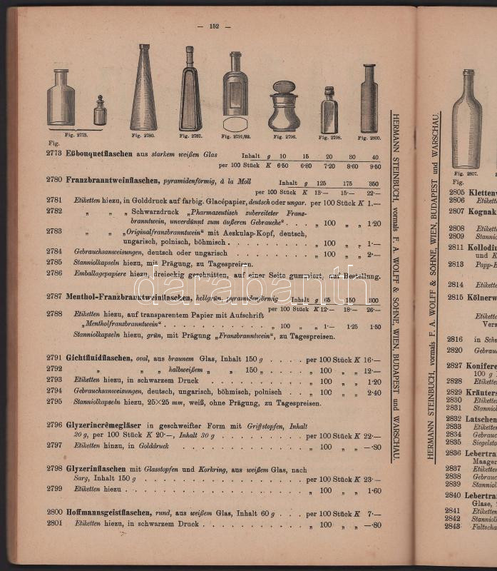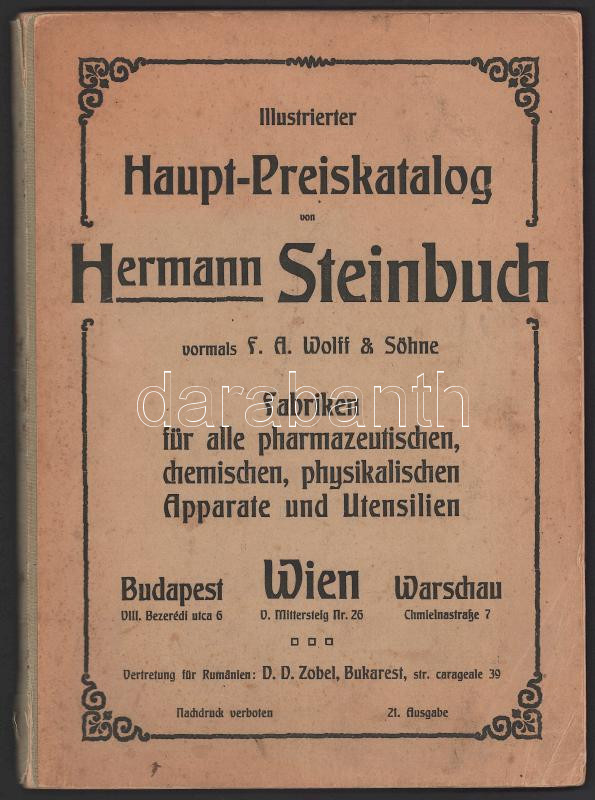 Hermann Steinbuch: Illustrierter Haupt-Preiskatalog von - - vormals F. A. Wolff & Söhne Budapest - Wien - Warschau. Fabriken für alle pharmazeutischen, chemischen, physikalischen Apparate und Utensilien. Gyógyszeripari, vegyi áruminta-katalógus.