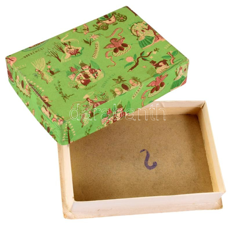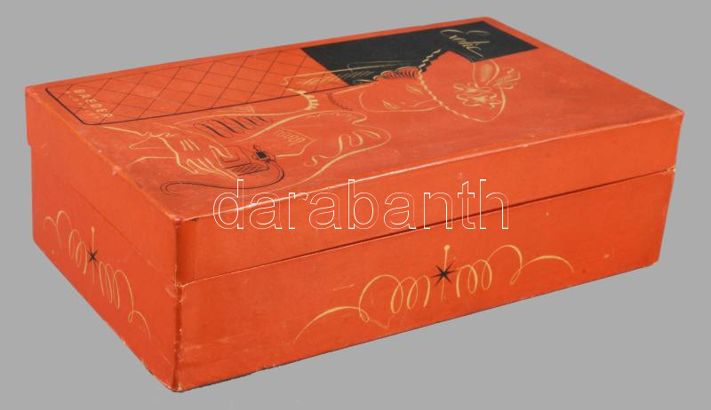 Doboz, Kaeszné Lukáts Kató (1900-1990) tervező Keringő bonbon a Szerencsi csokoládégyár számára papír borítással színesen nyomott. ca 1960 14,5x10x3,5 cm