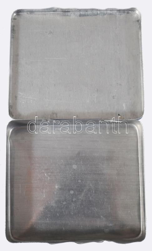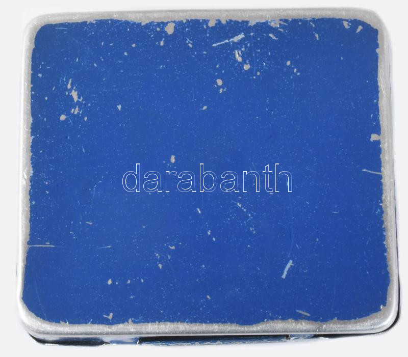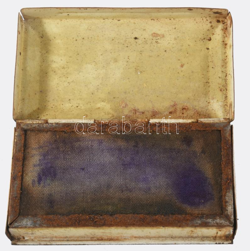 Bokolin bélyegzőpárna fém doboz, tartalommal, kopott, foltos, 9,5x5x1,5 cm