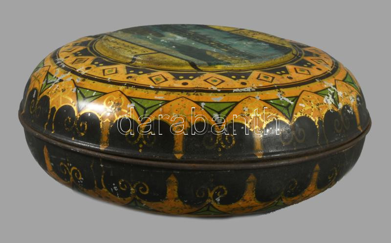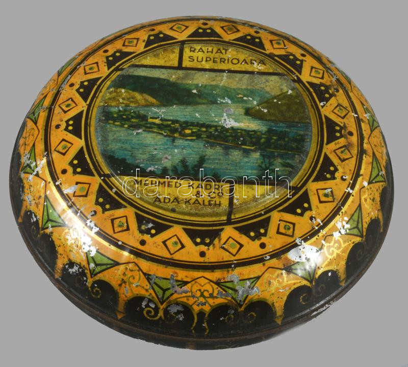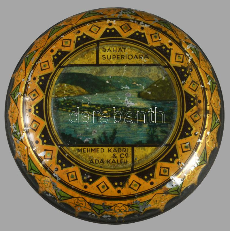 "Rahat Superioara." Ada-Kaleh, Mehmed Kadri & Co. feliratú fém doboz, kopott, d: 14 cm