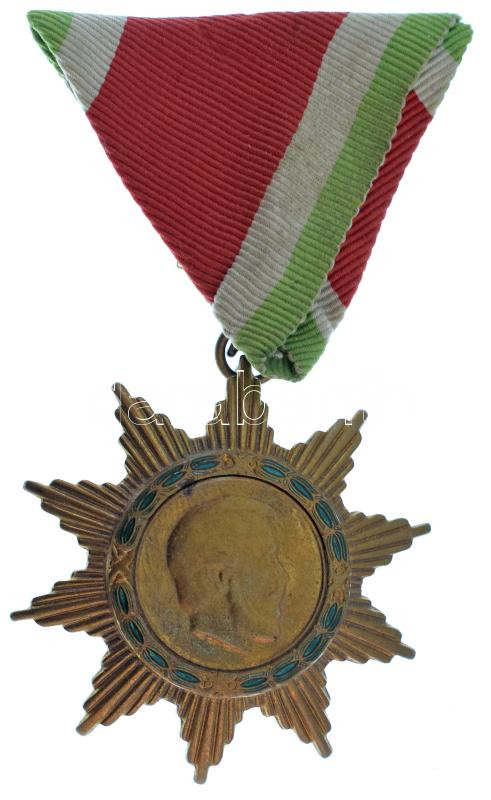 Hungary 1947. "Order of Merit of Hungarian Freedom, Bronze Grade" partially enamelled patinated bronze decoration with ribbon C:AU