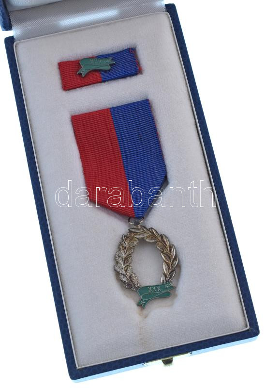1992. "Köztársasági Őrezredi Szolgálati Jel 30 év után" zománcozott, jelzett Ag kitüntetés, mellszalagon, miniatűrrel, szalagsávval, eredeti dísztokban T:AU patina