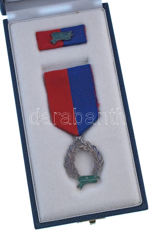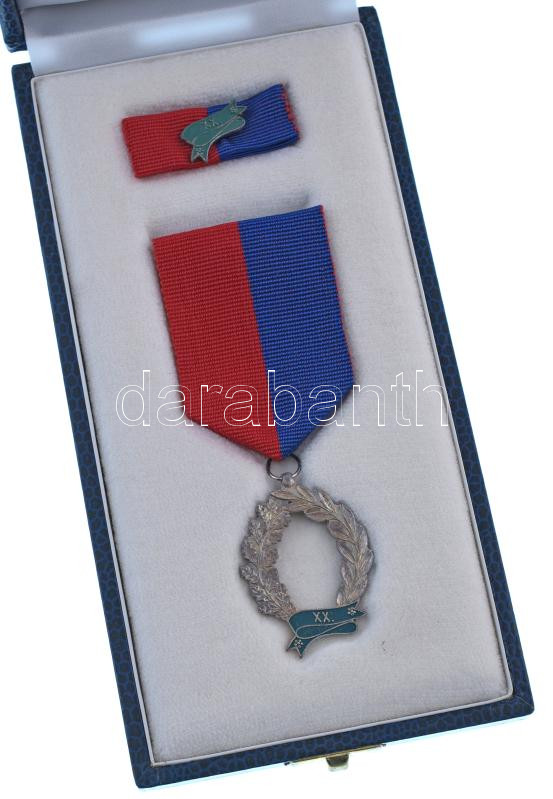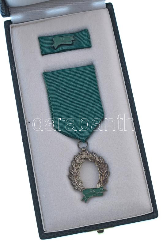 1992. "Határőrségi Szolgálati Jel 20 év után" jelzett Ag kitüntetés mellszalagon, miniatűrrel szalagsávon, dísztokban T:AU patina