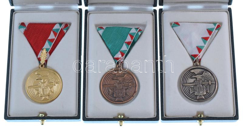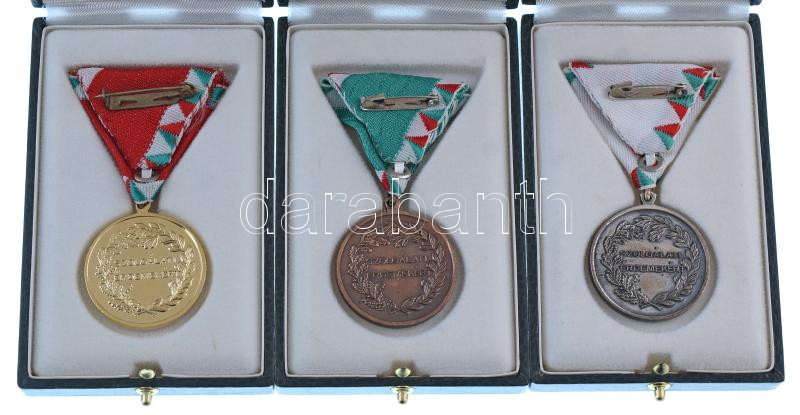 1992. "Szolgálati Jel (érdem után) I., II. és III. osztálya" aranyozott tombak, ezüstözött tombak, tombak kitüntetések mellszalagon, eredeti tokban T:AU