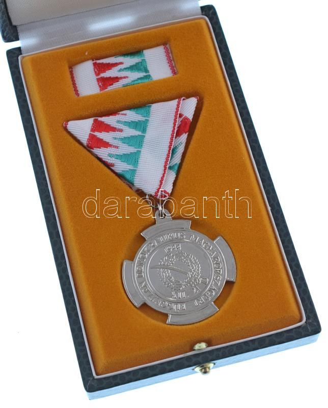 1991. "Magyar Köztársasági Ezüst Érdemkereszt, katonai tagozat" ezüstözött bronz kitüntetés mellszalagon, szalagsávval dísztokban T:AU patina