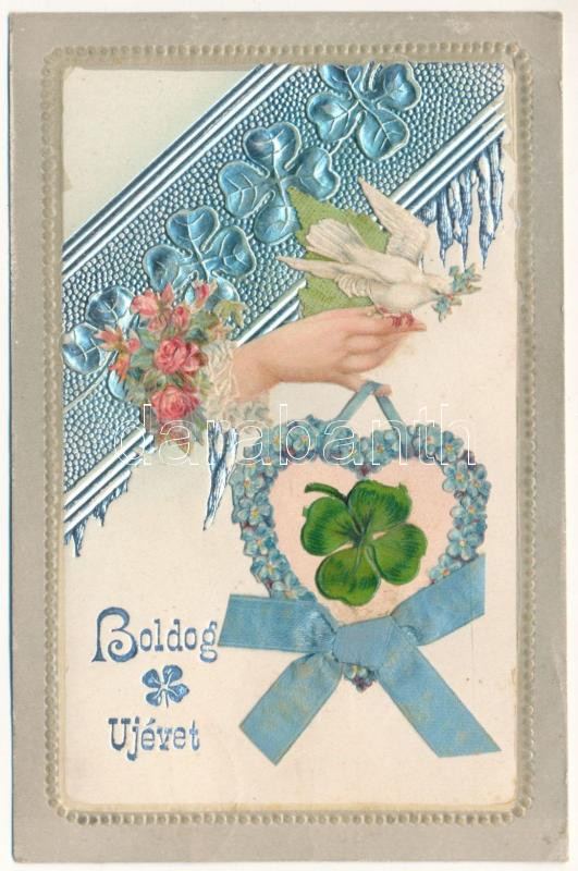 1909 Boldog újévet! Szecessziós dombornyomott rátétes üdvözlő képeslap... https://www.darabanth.com/de/460-Fernauktion/460.0/Ansichtskarten/GruC39Fkarten-Feste~1500084/1909-Boldog-ujevet-Szecesszios-dombornyomott-ratetes-udvozlo-kepeslap-New-Year-greeting-Art~II3081675