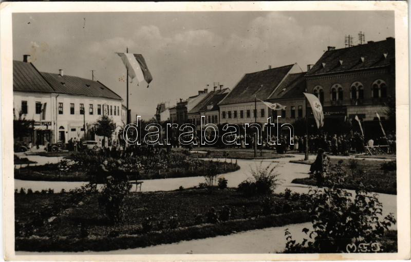 1940 Dés, Dej; Fő tér, bevonulás, országzászló, horogkeresztes zászlók... https://www.darabanth.com/de/460-Fernauktion/460.0/Ansichtskarten/Siebenburgen~1500006/1940-Des-Dej-Fo-ter-bevonulas-orszagzaszlo-horogkeresztes-zaszlok-main-square-entry-of-the~II3081995