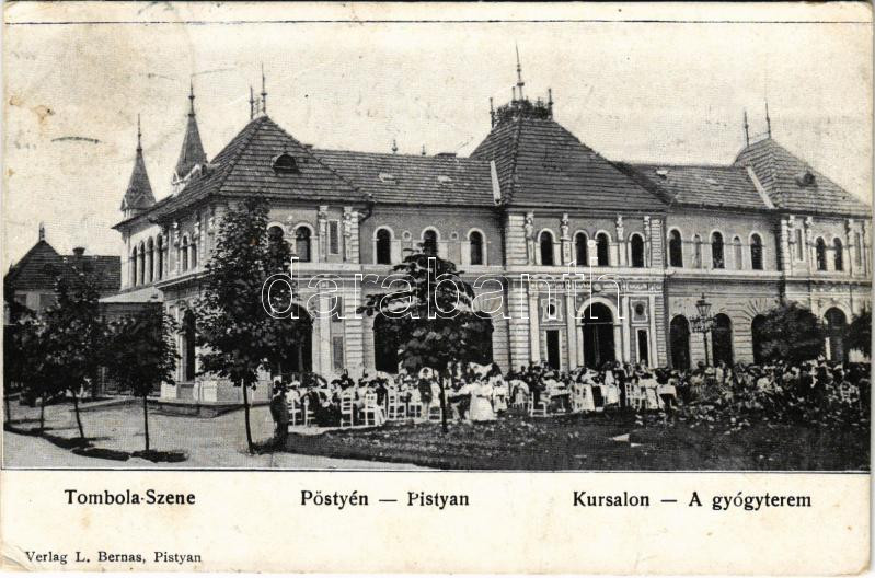1908 Pöstyén, Pistyan, Piestany; Tombola, gyógyterem. L. Bernas kiadás... https://www.darabanth.com/de/460-Fernauktion/460.0/Ansichtskarten/Slowakei~1500007/1908-Postyen-Pistyan-Piestany-Tombola-gyogyterem-L-Bernas-kiadasa-Szene-Kursalon-spa-EK~II3081250