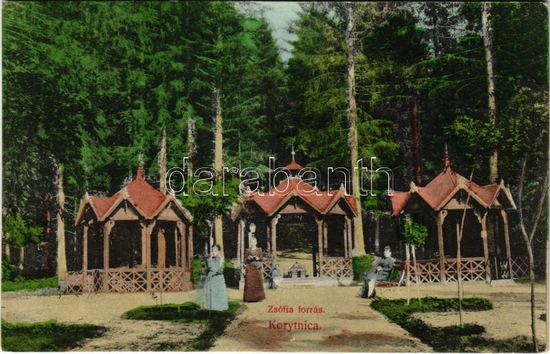 Beschreibung: Koritnyica, Korytnica; Zsófia forrás. Komor Testvérek kiadása / mineral water spring, spa