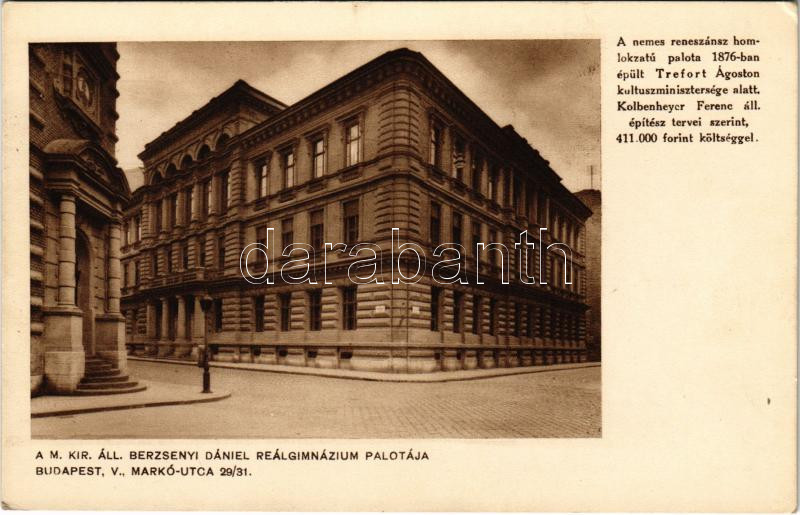 Budapest V. M. kir. áll. Berzsenyi Dániel Reálgimnázium palotája. E ké... https://www.darabanth.com/de/460-Fernauktion/460.0/Ansichtskarten/Ungarn~1500005/Budapest-V-M-kir-all-Berzsenyi-Daniel-Realgimnazium-palotaja-E-kepet-75-eves-fennallasanak~II3032465