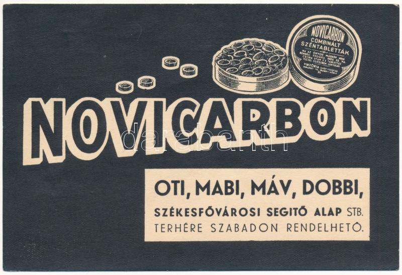 1939 Novicarbon reklámlap. Viktória gyógyszertár, Budapest, Erzsébet k... https://www.darabanth.com/de/460-Fernauktion/460.0/Ansichtskarten/Werbungen~1500071/1939-Novicarbon-reklamlap-Viktoria-gyogyszertar-Budapest-Erzsebet-korut-23-Hungarian~II3087418