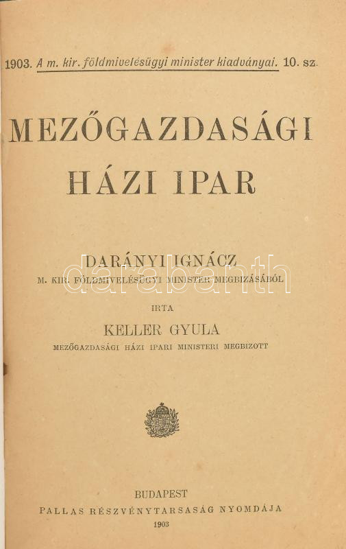 Keller Gyula: Mezőgazdasági házi ipar. Bp., 1903. Pallas Részvénytársaság Nyomdája. A m. kir. földmivelésügyi minister kiadványai 10. sz. Újrakötött félműbőr-kötésben, jó állapotban.