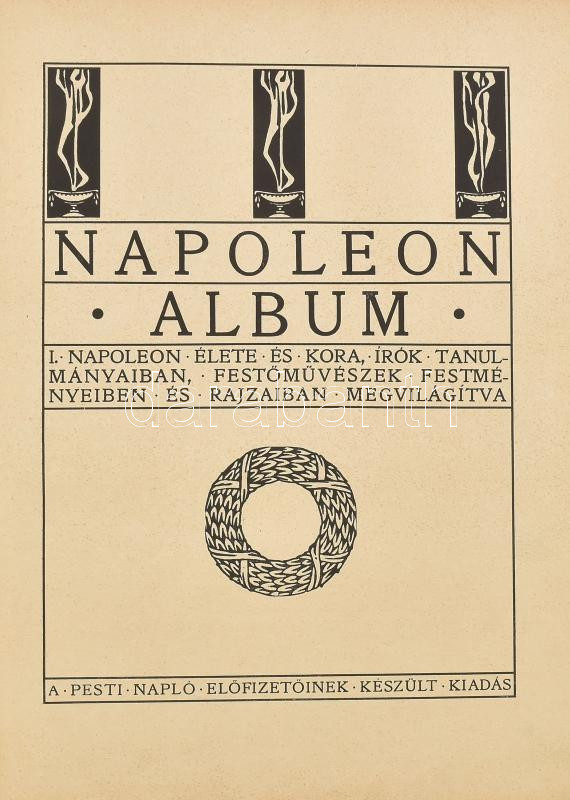 Napoleon album. I. Napoleon élete és kora, írók tanulmányaiban, festőművészek festményeiben és rajzaiban megvilágítva. A Pesti Napló előfizetőinek készült kiadás. Bp., [1912], Pesti Napló (Hornyánszky-ny.), 160 p + 12 t. Gazdag szövegközti és egészoldalas képanyaggal illusztrált. Kiadói egészvászon-kötés, kopott borítóval.