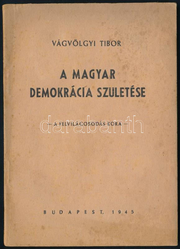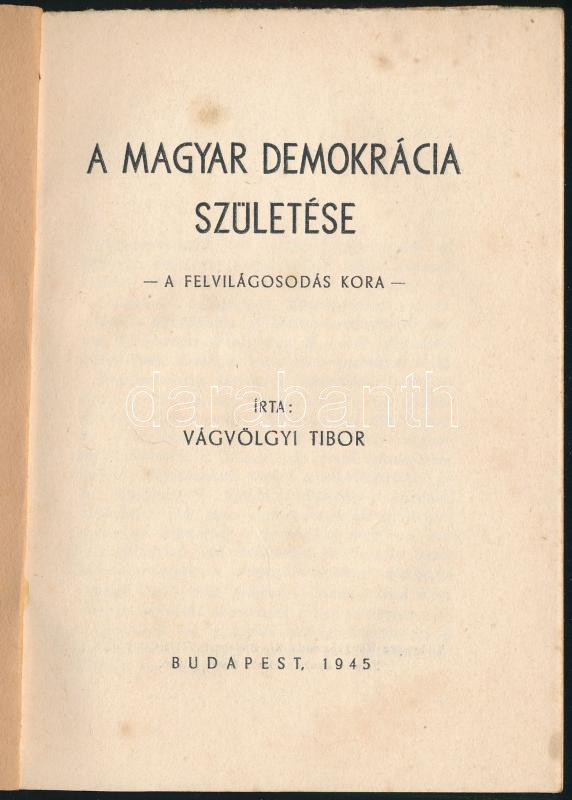 Vágvölgyi Tibor: A magyar demokrácia születése. A felvilágosodás kora.... https://www.darabanth.com/de/460-Fernauktion/460.0/Bucher/Bucher-Geschichte~1000020/Vagvolgyi-Tibor-A-magyar-demokracia-szuletese-A-felvilagosodas-kora-Bp-1945-Vilagossag-ny~II3082239