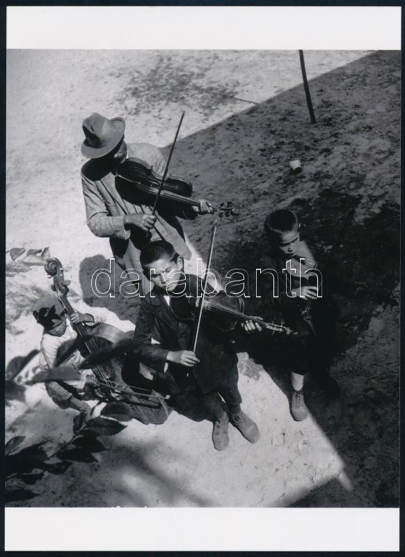 1932 Besnyő Éva (1910-2003) magyar származású holland fotográfus felvétele ,,Családi zenekar egy balatoni vasútállomáson", 1 db modern nagyítás jelzés nélkül, 21x15 cm