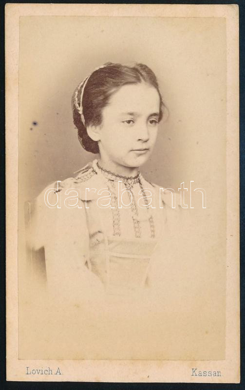 cca 1865 Női portré, keményhátú fotó Lovich Antal kassai műterméből, 1... https://www.darabanth.com/de/460-Fernauktion/460.0/Fotografie/Foto~500023/cca-1865-Noi-portre-kemenyhatu-foto-Lovich-Antal-kassai-mutermebol-10-5x6-5-cm~II3084758