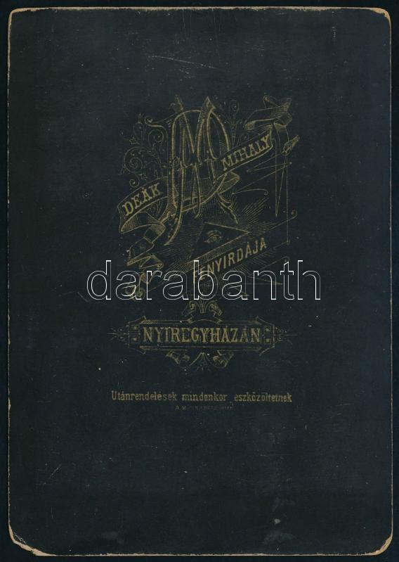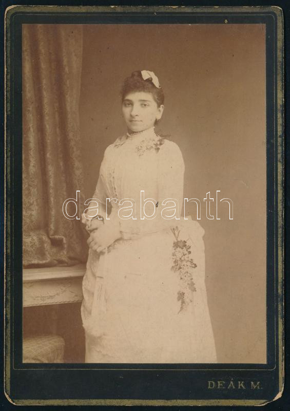 cca 1885 Női portré, keményhátú fotó Deák Mihály nyíregyházai műterméb... https://www.darabanth.com/de/460-Fernauktion/460.0/Fotografie/Foto~500023/cca-1885-Noi-portre-kemenyhatu-foto-Deak-Mihaly-nyiregyhazai-mutermebol-szabadkomuves-hatlappal-~II3085335