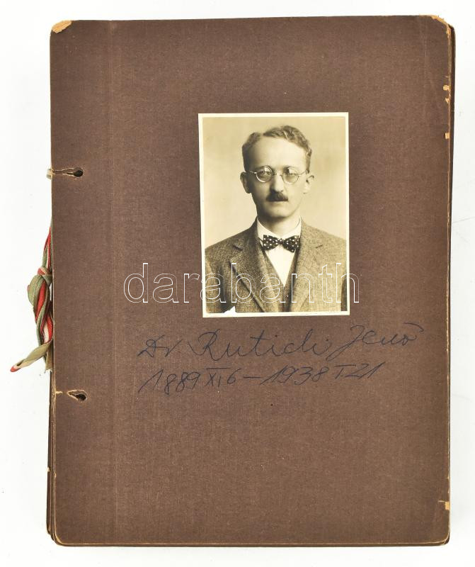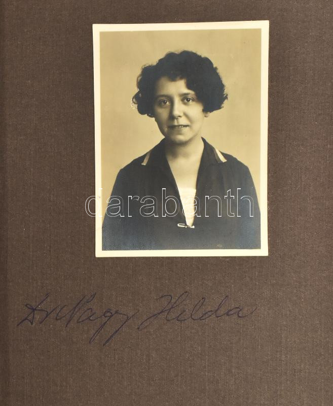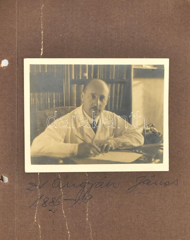 cca 1920 Híres magyar orvosok arcképei, Fotók feliratzott albumlapokon, Rutich Jenő, Frgyes János, Ángyán János, Jendrassik, Blaskó, Nagy Hilda, Mittag Margit, 28 db nevesített fotó 7x9 cm méretben