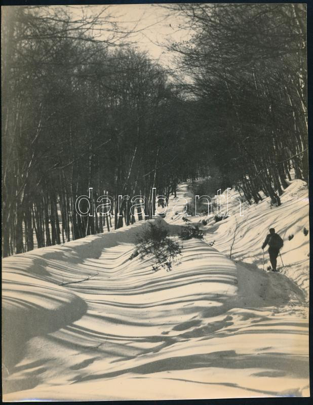 cca 1936 Seiden Gusztáv (1900-1992) budapesti fotóművész (késÅ‘bb Londonban élt, de ott már nem fotografált) ,,Téli verÅ‘fény - napos sà út a Mátrában" cÃmű vintage fotója, késÅ‘bbi nagyÃtás, amely a róla szóló könyv egyik illusztrációja volt, jelzés nélkül, ezüst zselatinos fotópapÃron, 24x18 cm