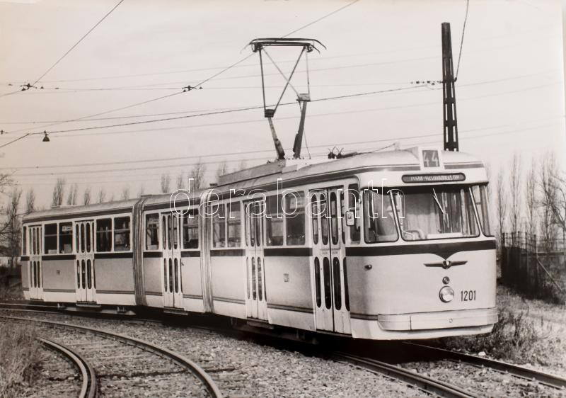 Beschreibung: cca 1960, Fővárosi Villamos Vasút "Bengáli" becenevű csuklós villamosa. Kis szélszakadásokkal, 27,5x39,5 cm