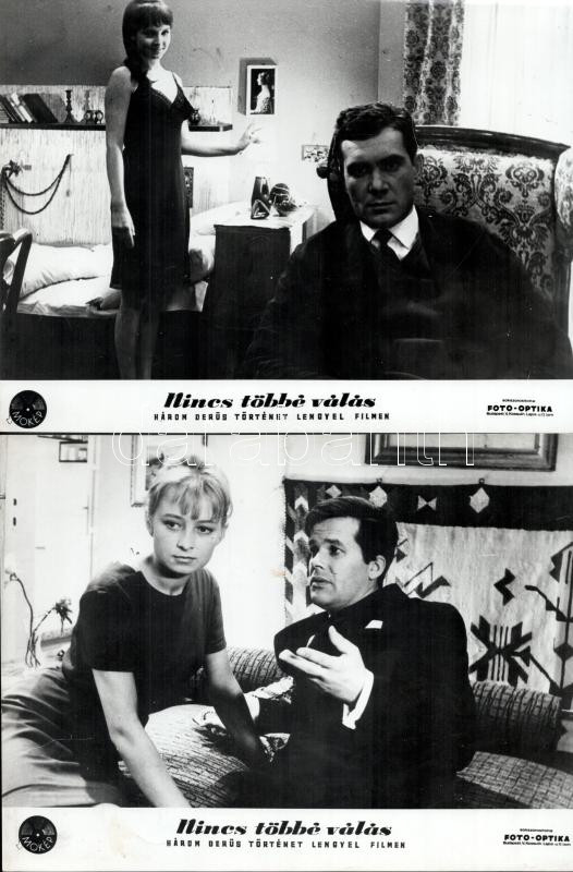 cca 1978 előtti ,,Nincs többé válás" című lengyel film jelenetei és szereplői, 15 db vintage produkciós filmfotó (vitrinfotó, lobbyfotó) ezüst zselatinos fotópapíron, a használatból eredő (esetleges) kisebb hibákkal, 18x24 cm