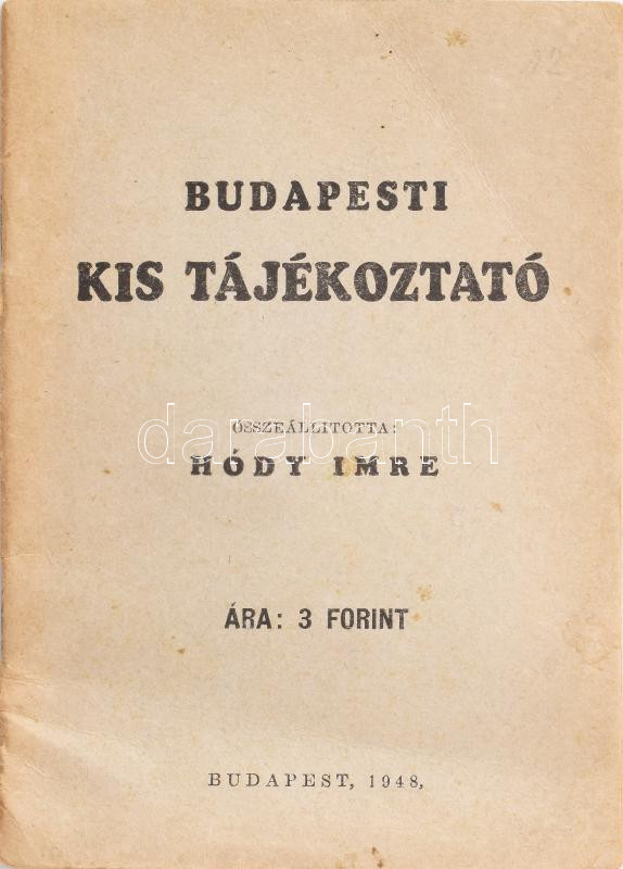 Hódy Imre: Budapesti kis tájékoztató. Összeáll.: - -. Bp., 1948, (Légr... https://www.darabanth.com/de/460-Fernauktion/460.0/Kunst-Dokumente-andere-Sammelgebiete/Budapest-150~2500001/Hody-Imre-Budapesti-kis-tajekoztato-Osszeall--Bp-1948-Legrady-ny-40-p-Kiadoi~II3080611
