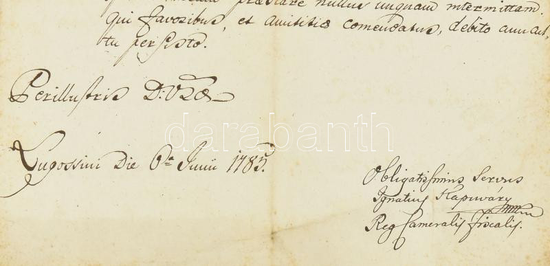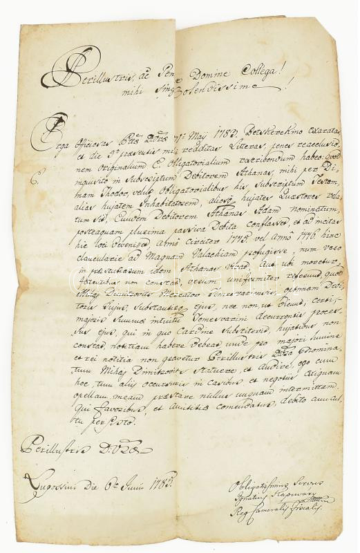 1783 Ex offo levél Lugosról Nagybecskerekre a pénzügyi igazgatósághoz latin nyelven /