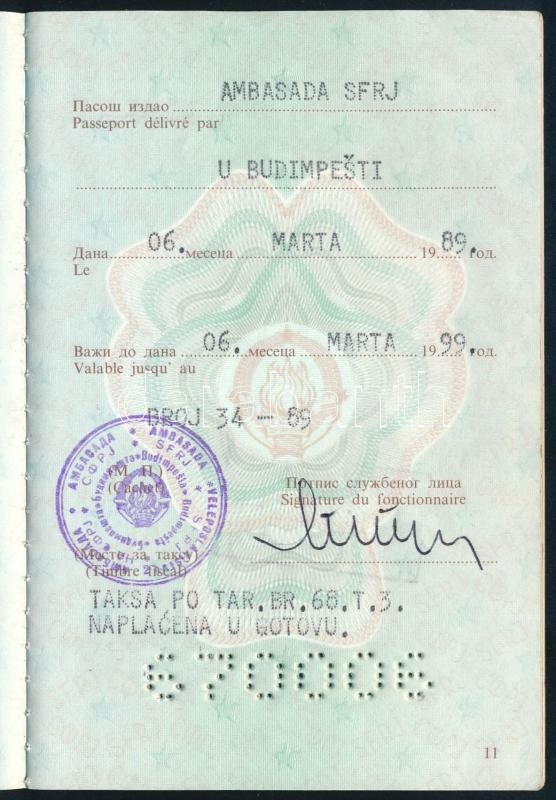1989 Jugoszláv útlevél, a budapesti jugoszláv nagykövetség által magya... https://www.darabanth.com/de/460-Fernauktion/460.0/Kunst-Dokumente-andere-Sammelgebiete/Dokument~500020/1989-Jugoszlav-utlevel-a-budapesti-jugoszlav-nagykovetseg-altal-magyar-szemely-reszere-kiallitva-~II3081220