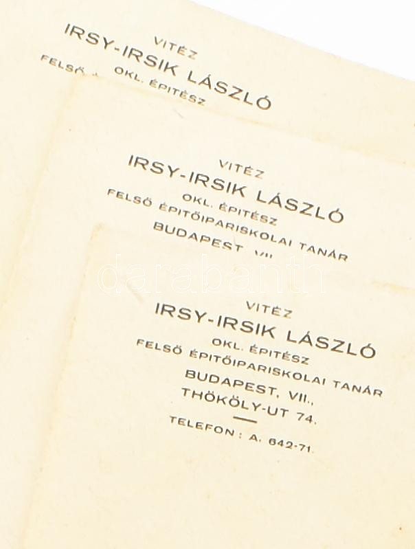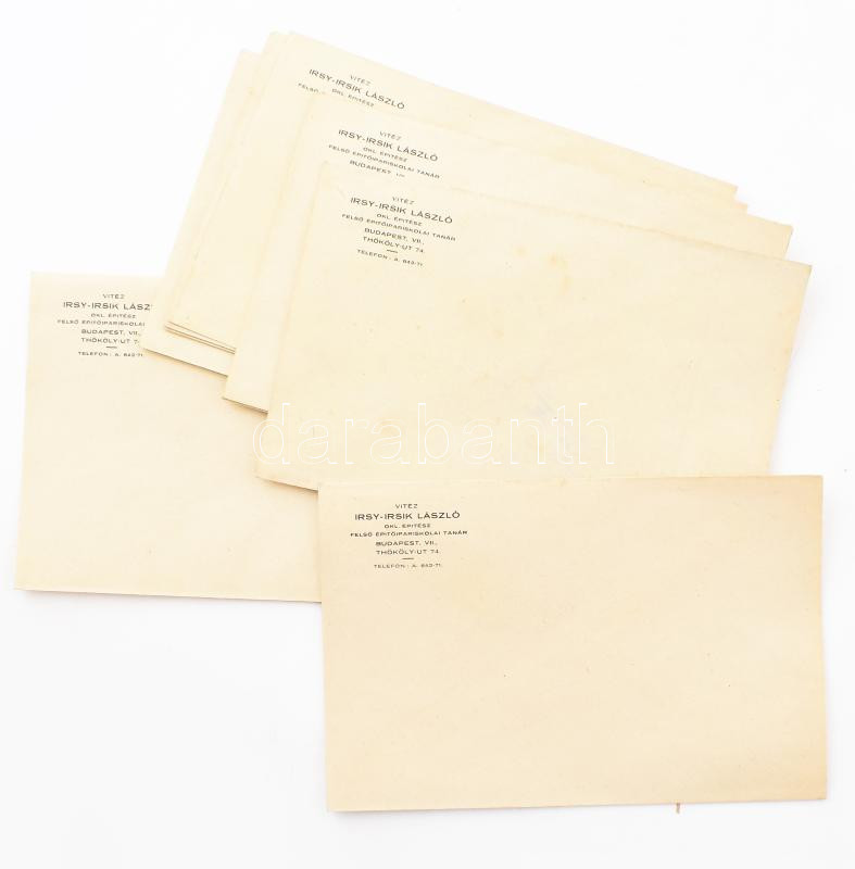 Vitéz Irsy-Irsik László építész fejléces borítékjai, 10-11 db https://www.darabanth.com/de/460-Fernauktion/460.0/Kunst-Dokumente-andere-Sammelgebiete/Dokument~500020/Vitez-Irsy-Irsik-Laszlo-epitesz-fejleces-boritekjai-10-11-db~II3088248