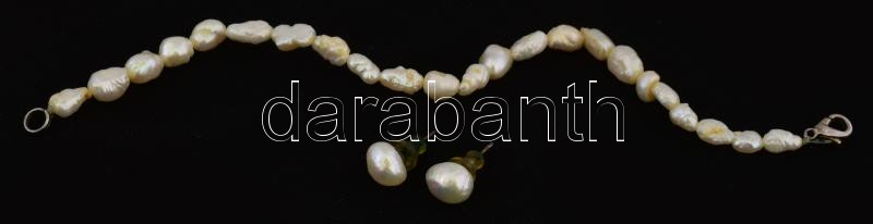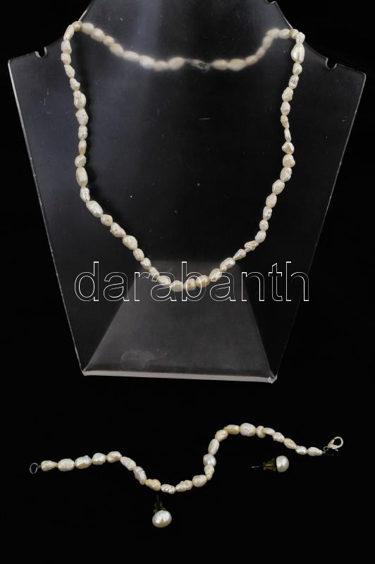 Beschreibung: Tenyésztett gyöngy ékszer szett: nyaklánc, karlánc, fülbevaló