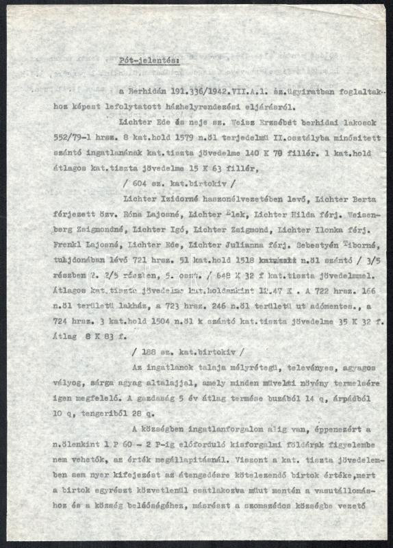 1942 Berhidai zsidó ingatlanokkal (Lichter család) kapcsolatos jelenté... https://www.darabanth.com/de/460-Fernauktion/460.0/Kunst-Dokumente-andere-Sammelgebiete/Judaica~1000008/1942-Berhidai-zsido-ingatlanokkal-Lichter-csalad-kapcsolatos-jelentes-es-potjelentes-4plus4-~II3079074