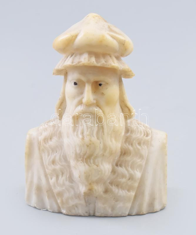 Leonardo da Vinci Faragott mészkő bűszt 11 cm